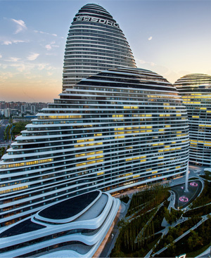 望京SOHO位于北京市朝阳区望京街与阜安西路交叉路口,由世界著名建筑师扎哈 · 哈迪德(Zaha Hadid)担纲总设计师,占地面积115,392平...